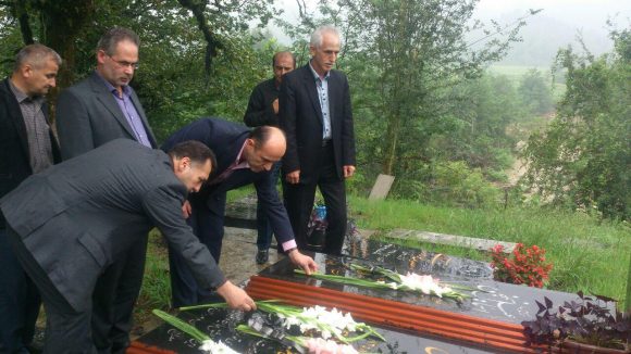 قبل از این دیدار نجفی با همراهی فرهنگیان و اهالی روستای بیجار سر (زادگاه حسن امیدزاده) با حضور بر سر مزار آن معلم و اهدای گل یاد و خاطره وی را زنده نگه داشتند.
