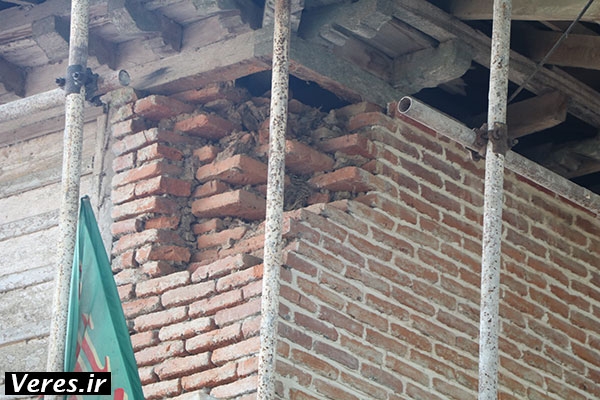قارچ روی آجرها ، تمیز کردن بندهای بین آجرها و ملاتهای قدیمی بجا مانده و یک سطح نمودن بند بین آجرها از جمله اقدامات مرمتی بقعه است که هم اکنون در حال انجام است.
