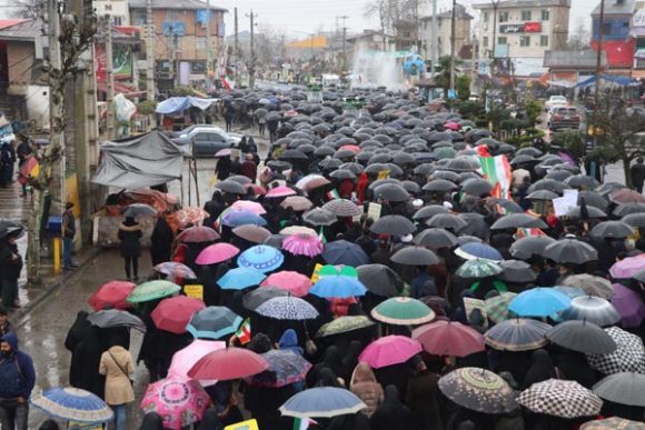 این راهپیمایی پرشور صبح امروز از مصلی حضرت محمد(ص) آغاز و با اجماع در میدان انقلاب شفت به پایان رسید.