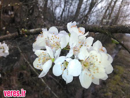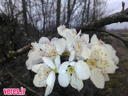 زمستان و شکوفه های بهاری درختان در شفت