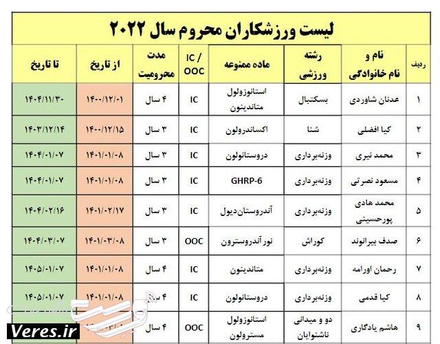 پرونده ورزشکاران ایرانی که محرومیت آنها از هر نوع فعالیت ورزشی به دلیل مصرف ماده ممنوعه از سال ۲۰۲۲ آغاز شده با اعمال محکومیت برای ۳۳ نفر بسته میشود.