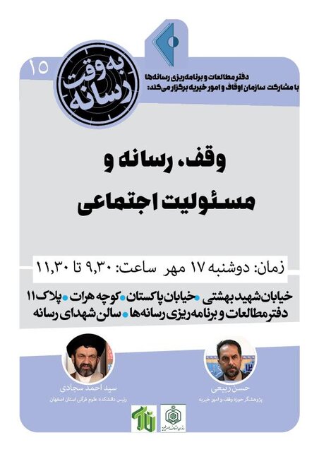 نشست تخصصی وقف، رسانه و مسئولیت اجتماعی برپا میشود