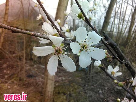 زمستان و شکوفه های بهاری درختان در شفت